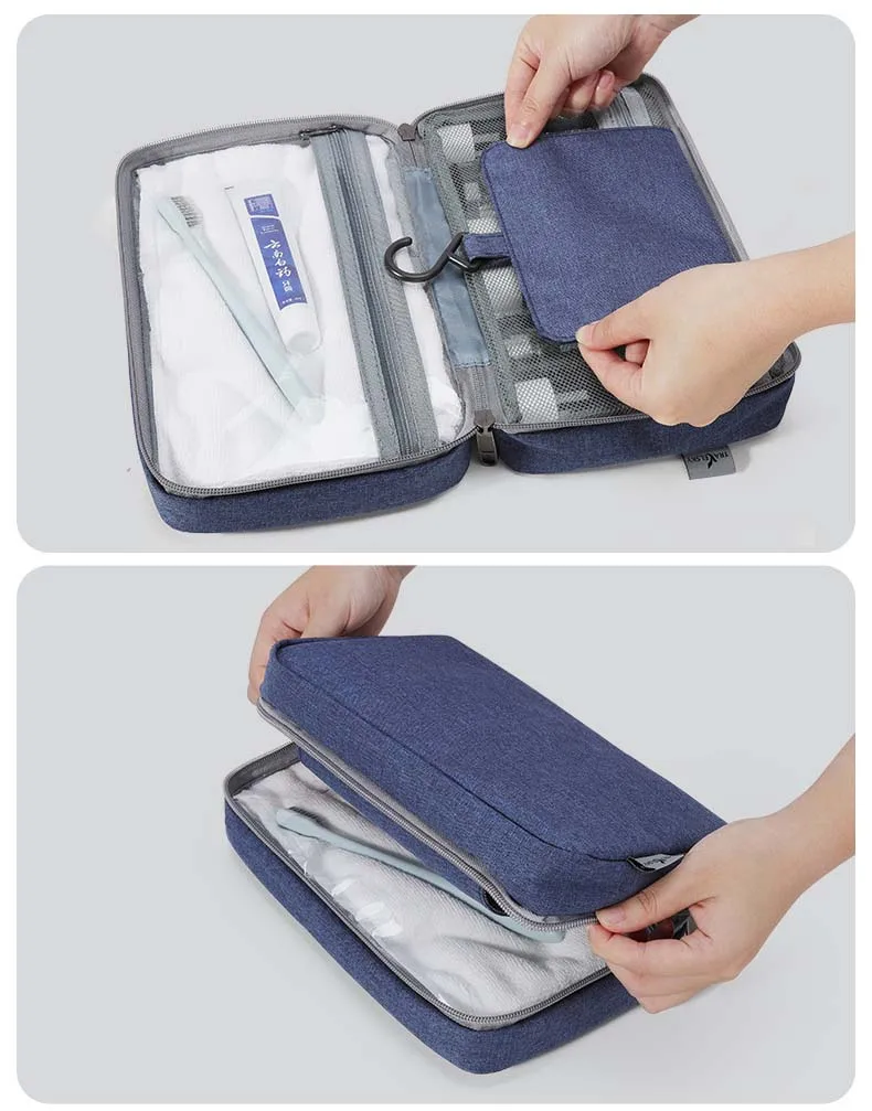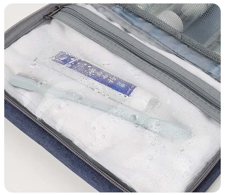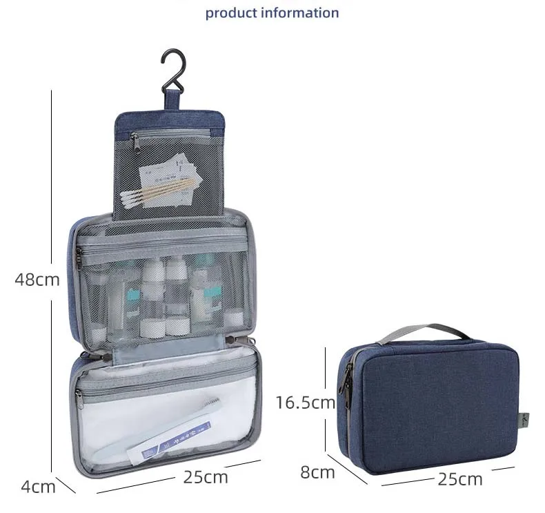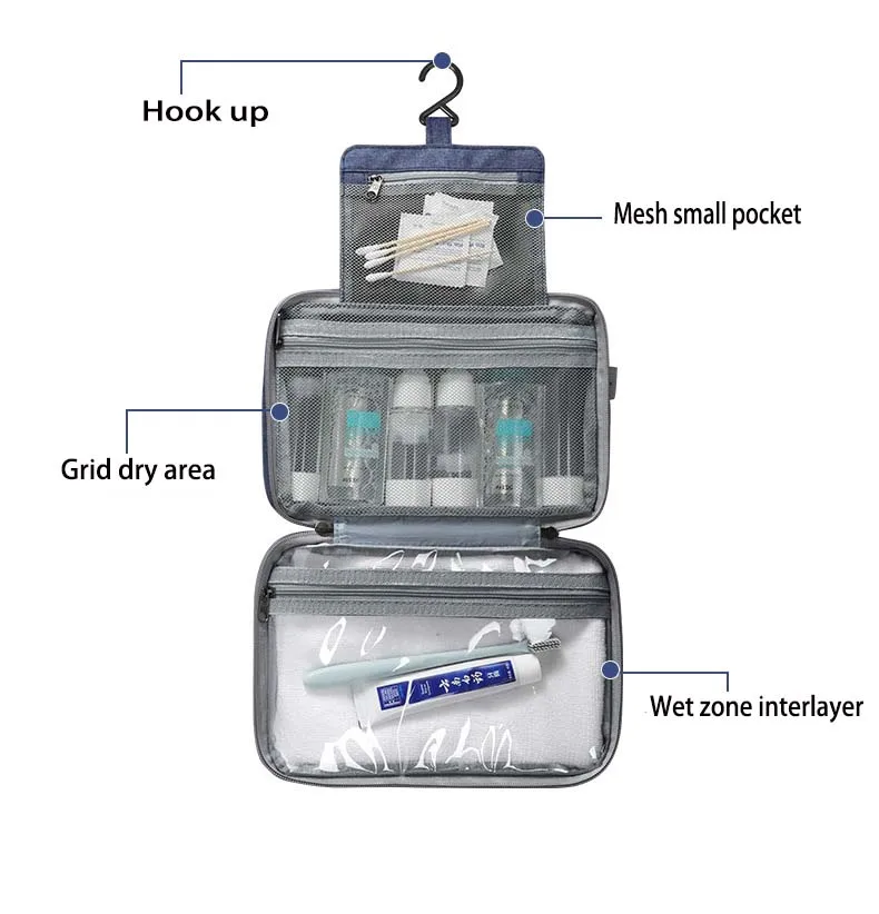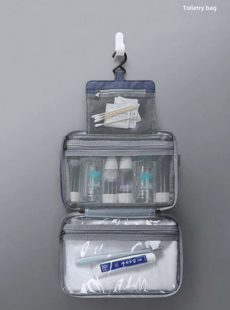 The built-in hanging hook allows for convenient access in bathrooms, hotel rooms, or on-the-go, while the zippered closure and top handle make it easy to carry and store. Whether for travel, gym, or daily home use, this toiletry bag ensures your essentials stay clean, dry, and organized.